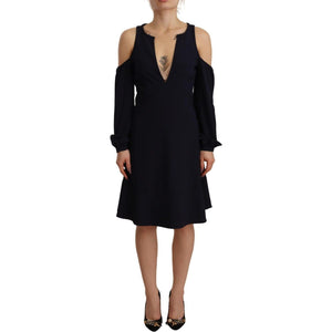 Twinset Black Long Sleeves Open Shoulder A-line Dress