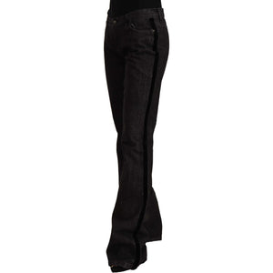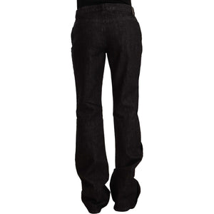 GF Ferre Black Mid Waist Cotton Denim Straight Boot Cut Jeans