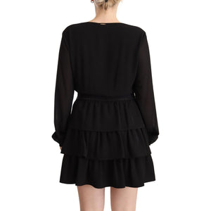 Liu Jo Black Polyester Long Sleeves V-neck Mini A-line Dress