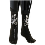 Dolce & Gabbana Black Stretch Floral Clear Crystal Socks