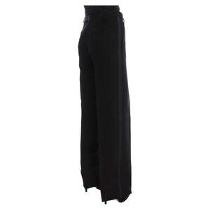Ermanno Scervino Black Striped Cotton Blend Wide Legs Pants