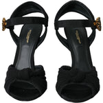 Dolce & Gabbana Black Suede Embellished Heels Sandals Shoes