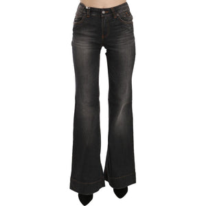 John Galliano Black Washed Mid Waist Flared Denim Casual Jeans