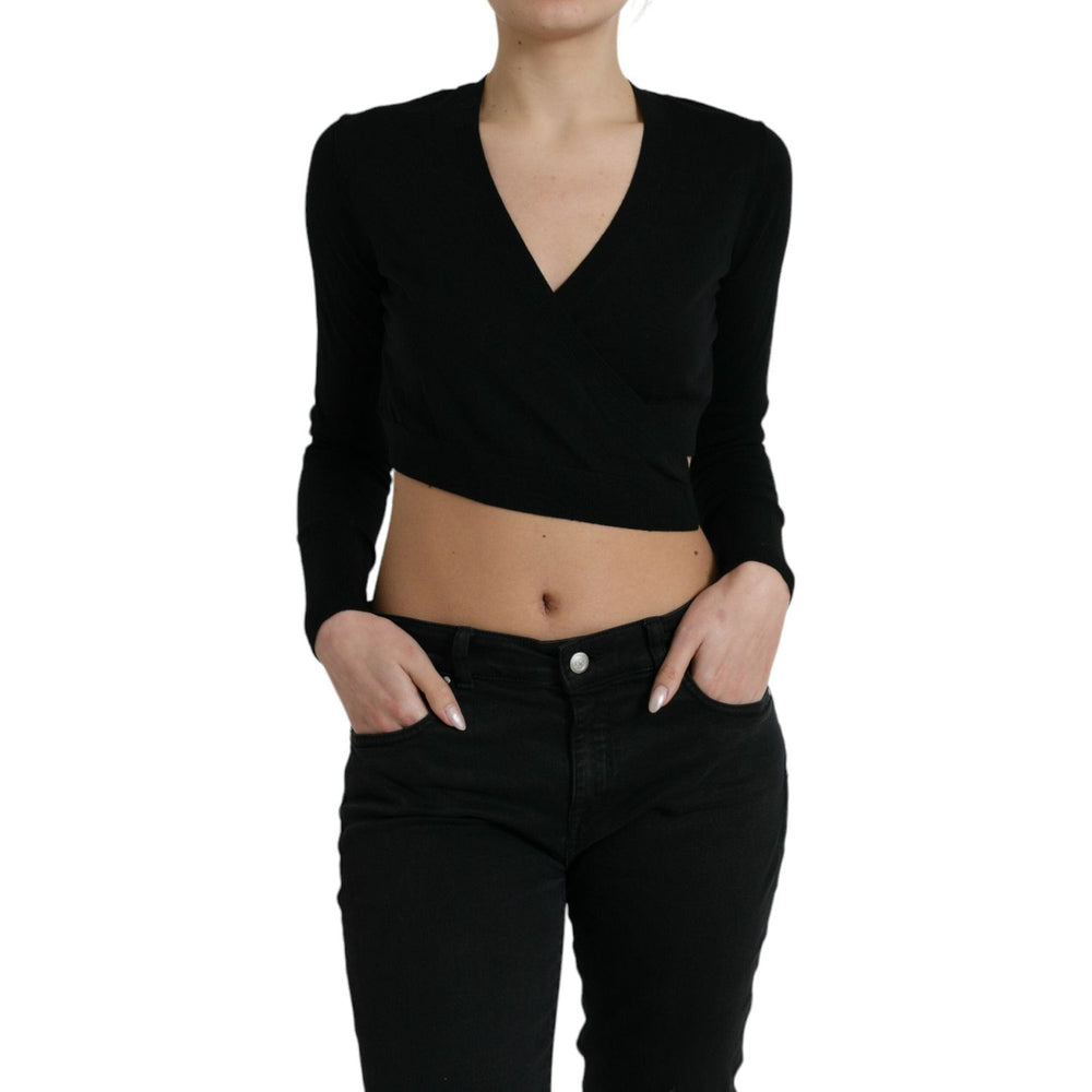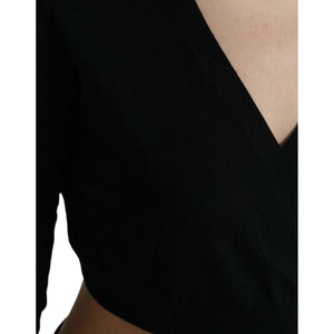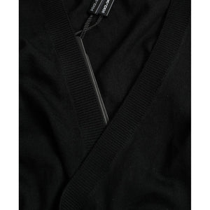 Dolce & Gabbana Black Wool V-neck Crossed Cardigan Sweater
