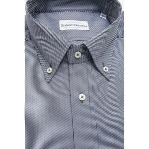 Elevate your wardrobe with the quintessence of sophistication: a Robert Friedman button-down shirt. Crafted for the discerning gentleman, this regular-fit marvel epitomizes classic style with a modern edge. Its pristine cotton construction, sourced from AL, ensures unparalleled comfort and breathability. Dressed in a versatile blue hue, this piece is not merely a shirt; it’s a statement.