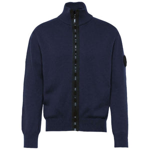 La Martina full zip sweater in cotton and wool with velcro logo patch on the shoulder, carabiner included in the zip puller