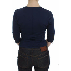 Exte Blue Cotton Top Zipper Deep Crew-neck Sweater