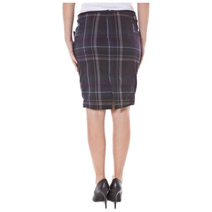 SHORT SKIRT, BUTTON AND BACK ZIP, INSERT, LOGO