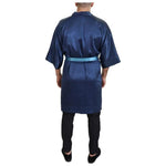 Dolce & Gabbana Blue Satin Silk Waist Belt Robe Jacket