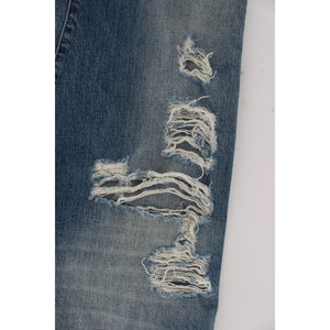 John Galliano Blue Wash Cotton Boyfriend Fit Cropped Jeans