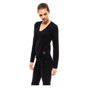 Experience the epitome of chic sophistication with Montana Blu’s V-neck Sweater. This piece isn’t just a garment; it’s a statement of elegant style, marrying comfort with luxury. Glistening embellishments adorn the logo, adding a touch of sparkle to your ensemble, perfect for those who dare to shine. Crafted in Italy, this sweater combines the warmth of wool with the sleekness of acetate, offering an irresistible texture and quality that stands out in any wardrobe. Whether you pair it with tailored trousers or a flowing skirt, this Montana Blu creation is designed to make an impact.