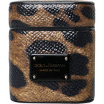 Dolce & Gabbana Brown Leopard Calf Leather Metal Logo Plaque Airpods Case