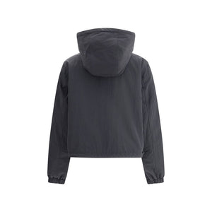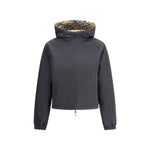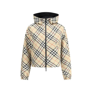 Burberry’s reversible Jacket is a short, versatile style with an adjustable drawstring hood. The double-slider front zipper allows for convenient closure, while zippered side welt pockets offer functionality. Elasticized cuffs and an adjustable drawstring hem allow for a customized fit. The double-face design features a monochrome pattern on one side and the iconic Check Archivio on the other, with The Equestrian Knight logo embroidered on the front. The regular fit ensures comfort and practicality.
