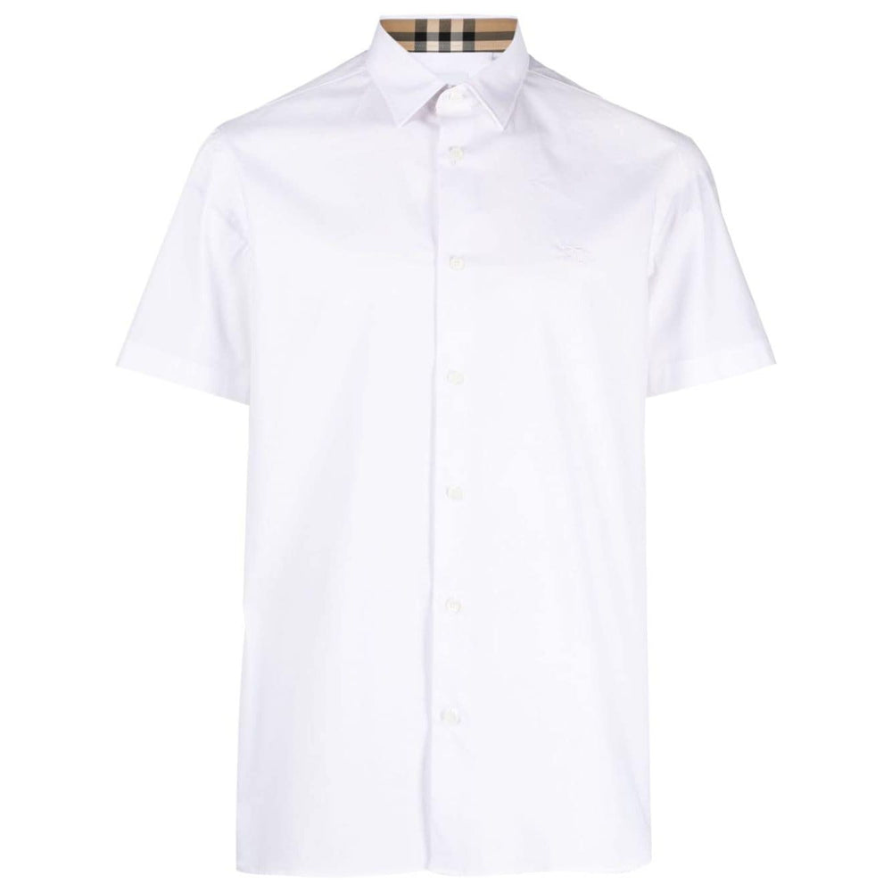white stretch-cotton poplin texture signature Equestrian Knight embroidery classic collar front button fastening short sleeves straight hem EKD logo cotton shirt Size and Fit - This piece fits true to size. We recommend you get your regular size. Model is 1,84m / 6ft 1in wearing size M
