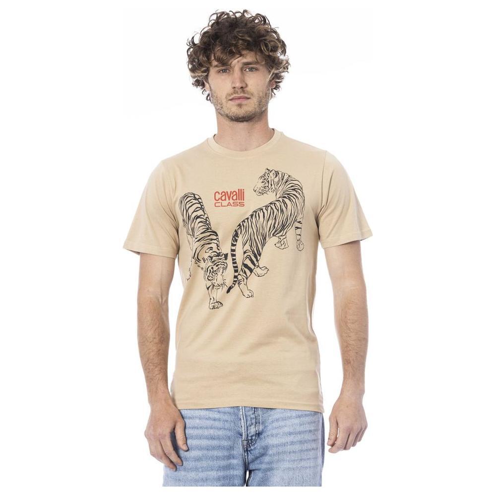 Cavalli Class Beige Cotton Men T-Shirt