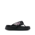 quilted flatform flip flops from CHIARA FERRAGNI featuring black, embroidered logo, single toe strap, quilted, flatform sole and slip-on style. CF Platform flip flops Size and Fit - Heel 2 in / 5 cm; Platform 1,4 in / 3,5 cm