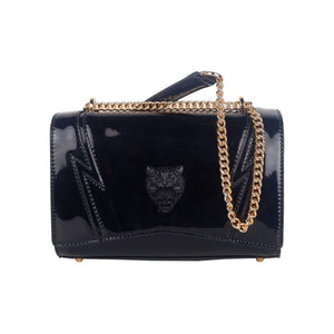 Dive into the world of high fashion with this audacious Plein Sport crossbody bag, perfect for those who dare to stand out. Exuding a patent leather finish with iconic brand logos emblazoned on both sides, this bag makes a bold statement. The sleek chain shoulder strap adds an edgy touch to your ensemble, while the magnetic opening ensures your essentials are secure and accessible with absolute ease. Crafted from durable Polyethylene and originating from CN, it’s the epitome of luxury meeting practicality.