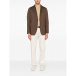 chocolate brown stretch-cotton notched lapels long sleeves with faux buttoned cuffs chest welt pocket two front patch pockets English rear vents multiple internal slip pockets unlined front button fastening Single-breasted pique jacket Size and Fit - This piece fits true to size. We recommend you get your regular size. Model is 1,84m / 6ft 1in wearing size 48 (IT)