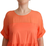 Twinset Coral Cotton Blend Short Sleeves Maxi Shift Dress