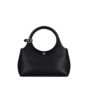black concealed top-zip fastening circular top handles adjustable detachable shoulder strap Holy leahter handbag Size and Fit - Width 10,24 in / 26 cm Height 11,02 in / 28 cm Depth 9,06 in / 23 cm Handle 7,87 in / 20 cm
