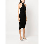 halterneck bodycon dress from COURRÈGES featuring black, ribbed knit, bodycon design, embroidered logo, halterneck, sleeveless, open back, below-knee length and ring hardware detailing. Sleeveless long dress Size and Fit - This piece fits true to size. We recommend you get your regular size. Model is 1,75m / 5ft 8in wearing size S