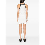 white/black cotton soft jersey halterneck contrasting border buckle-detail shoulder strap sleeveless appliqué logoat the chest internal logo tag thigh-length straight hem Buckle contrast short dress Size and Fit - This piece fits true to size. We recommend you get your regular size. Model is 1,75m / 5ft 8in wearing size S