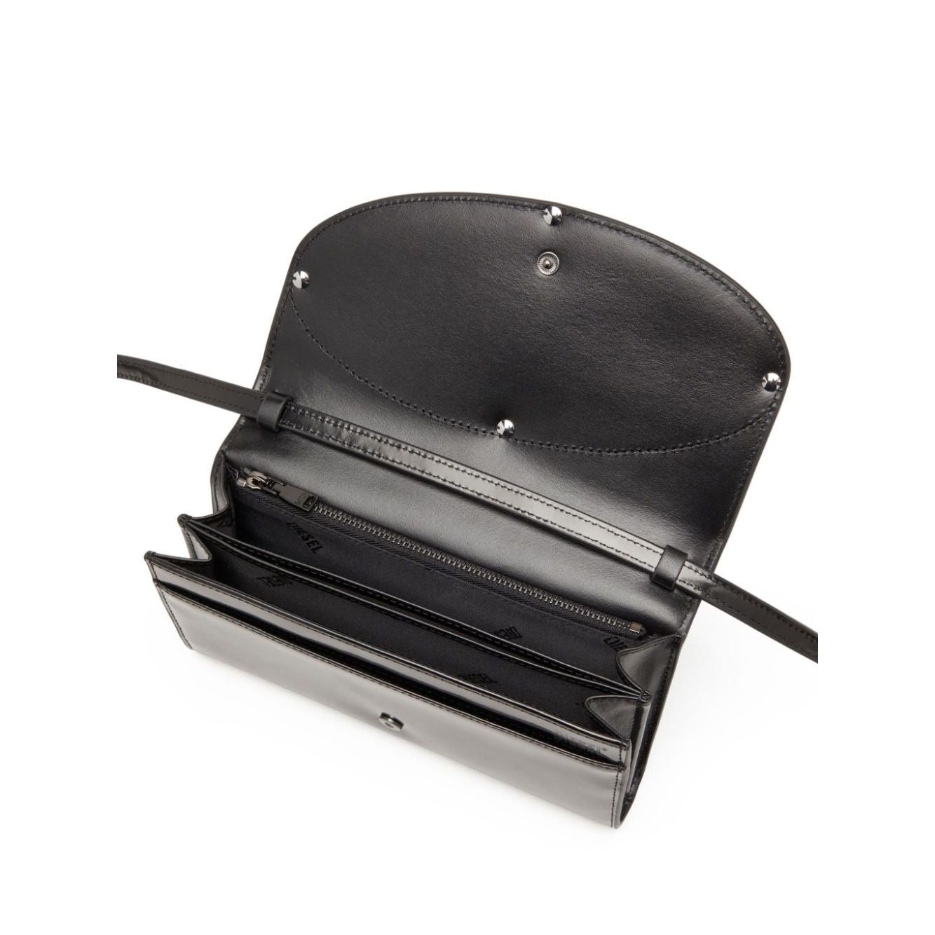 black calf leather logo plaque adjustable waist strap foldover top with press-stud fastening partitioned compartment internal card slots internal zip-fastening pocket 1DR leather mini bag Size and Fit - Width 7,68 in / 19,5 cm Height 4,72 in / 12 cm Depth 0,79 in / 2 cm Strap 53,15 in / 135 cm