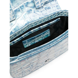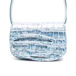 sky blue foldover top with magnetic fastening single top handle adjustable detachable shoulder strap This piece comes complete with a protective dust bag. 1DR leather shoulder bag Size and Fit - Width 8,07 in / 20,5 cm Height 5,51 in / 14 cm Depth 2,36 in / 6 cm Handle 19,69 in / 50 cm Strap 43,31 in / 110 cm