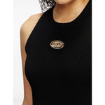 black fine ribbed crew neck Oval D logo plaque sleeveless slim cut straight hem thigh-length Oval-D mini dress Size and Fit - This piece fits true to size. We recommend you get your regular size. Model is 1,75m / 5ft 8in wearing size S