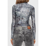 steel blue all-over graphic print Oval D logo plaque high neck long sleeves Printed high-neck top Size and Fit - This piece fits true to size. We recommend you get your regular size. Model is 1,75m / 5ft 8in wearing size S