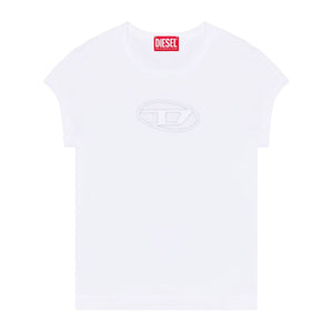 optical white stretch-cotton cut-out detailing logo patch to the front round neck short sleeves straight hem T-Angie cotton t-shirt