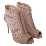 Dolce & Gabbana Beige Lace Suede Peep Toe Ankle Boots Shoes