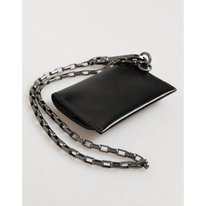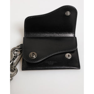 Dolce & Gabbana Black Cavallo Leather Wallet Chain Snap Bifold Card Holder