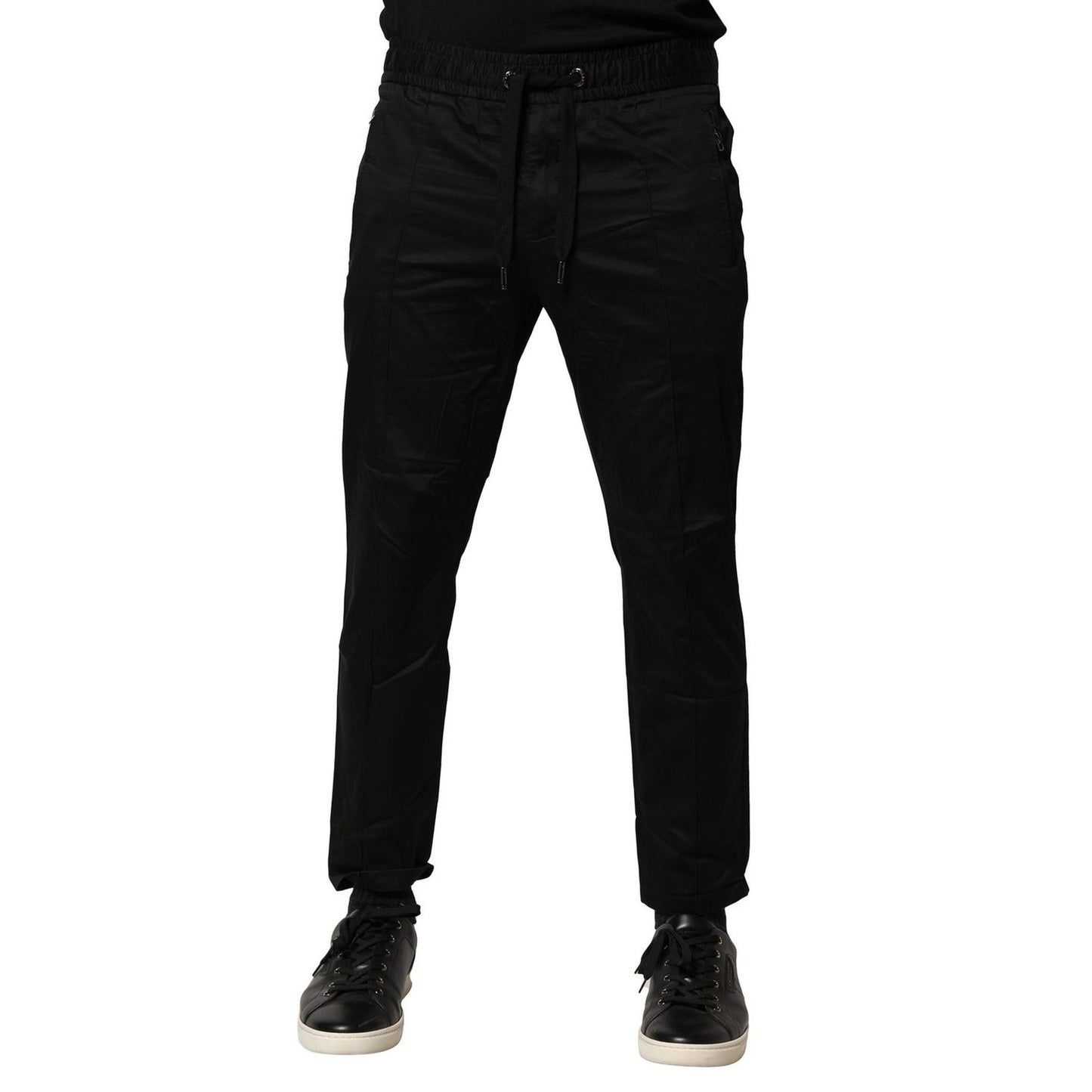 Dolce & Gabbana Black Cotton Mid Waist Jogger Pants