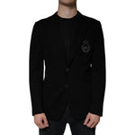 Dolce & Gabbana Black Crown Bee Single Breasted Coat Blazer