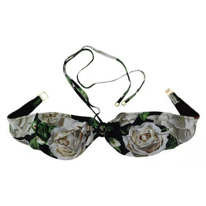 Dolce & Gabbana Black Floral Halter Beachwear Swimwear Bikini Top