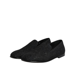 Dolce & Gabbana Black Jacquard Slip On Loafers Formal Shoes