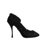 Dolce & Gabbana Black Lace Stretch Heels Mid Calf Boots Shoes