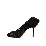 Dolce & Gabbana Black Lace Stretch Heels Mid Calf Boots Shoes