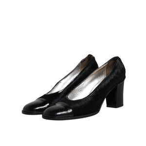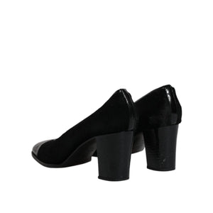Dolce & Gabbana Black Leather Block Heels Pumps Shoes