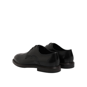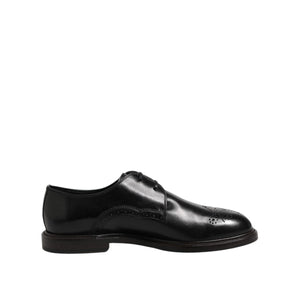 Dolce & Gabbana Black Leather Derby Wingtip Formal Shoes