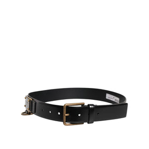 • Dolce & Gabbana Black Leather DG Logo Plaque Buckle Belt