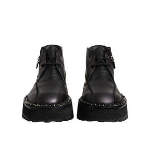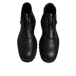 Dolce & Gabbana Black Leather Lace Up Ankle Boots Shoes