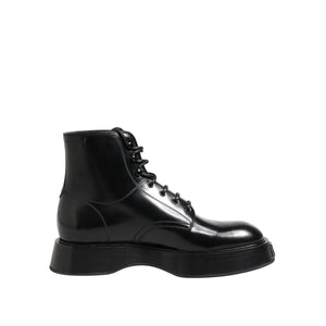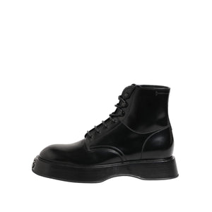 Dolce & Gabbana Black Leather Logo Ankle Boots Lace Up Shoes