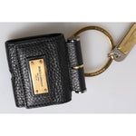 Dolce & Gabbana Black Leather Strap Gold Metal Logo Plaque Airpods Case