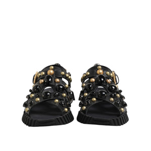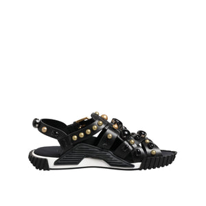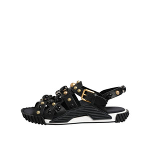 Dolce & Gabbana Black Leather Studded Ankle Strap Sandals Shoes