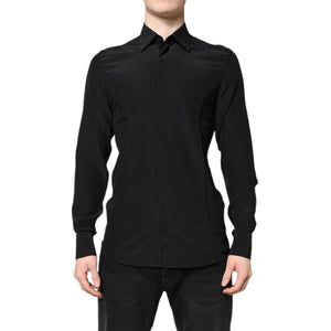 Dolce & Gabbana Black Silk GOLD Long Sleeves Dress Shirt