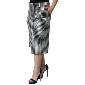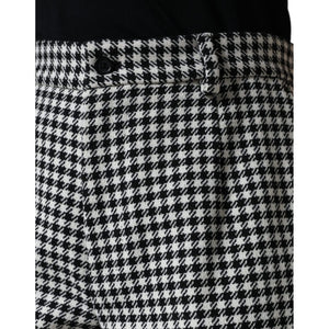 Dolce & Gabbana Black White Houndstooth Cropped Wide Leg Pants