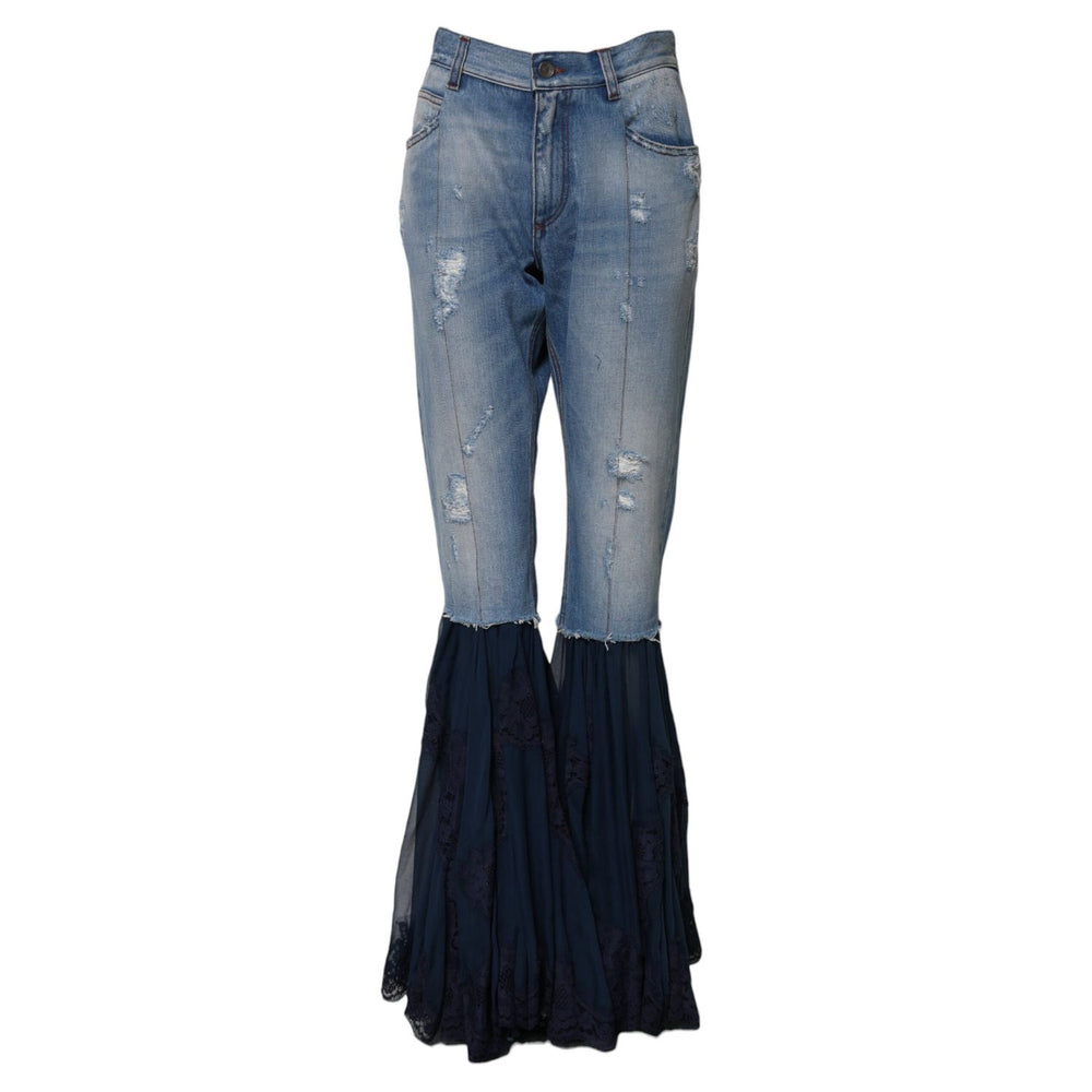 • Dolce & Gabbana Blue Cotton High Waist Flared Denim Jeans
