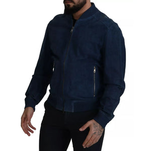 Dolce & Gabbana Blue Leather Perforated Full Zip Jacket